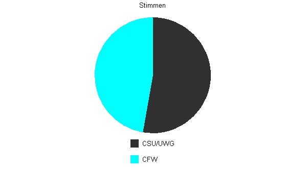 | 01 | Christlich-Soziale Union u. Unabhäng. Wählergruppe (CSU/UWG) | 11079 | 52,60% | 6 | 16 | 119 |